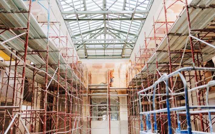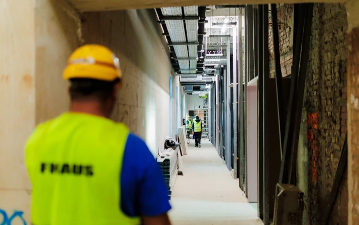 A beltérben még dolgoznak, a polgármester szerint 8 hónapra van még szükség a befejezésig, 2026 májusában várható, hogy elkészül és használatba lesz adva a szállodai és vendéglátóipari célra visszaállított épület.