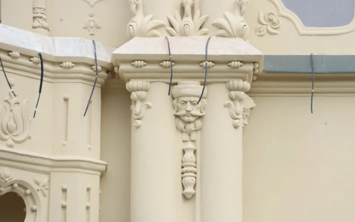 Gyönyörűnek tartják a homlokzatot a munkások is, akik a restaurálásán dolgoztak, pedig nap mint bajlódtak vele, nem pedig csak lentről csodálták, mint a járókelők szokták.