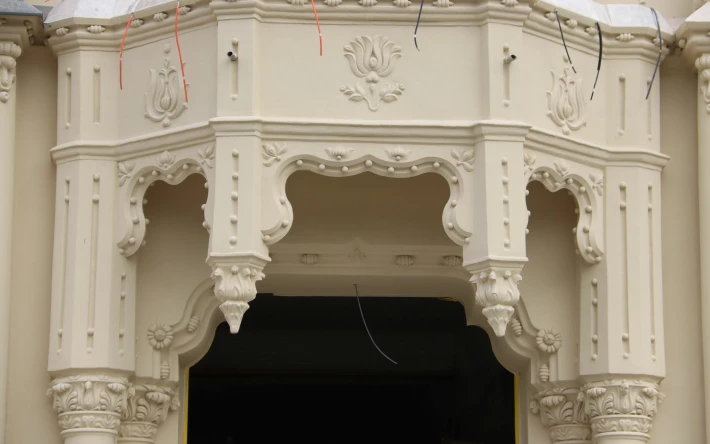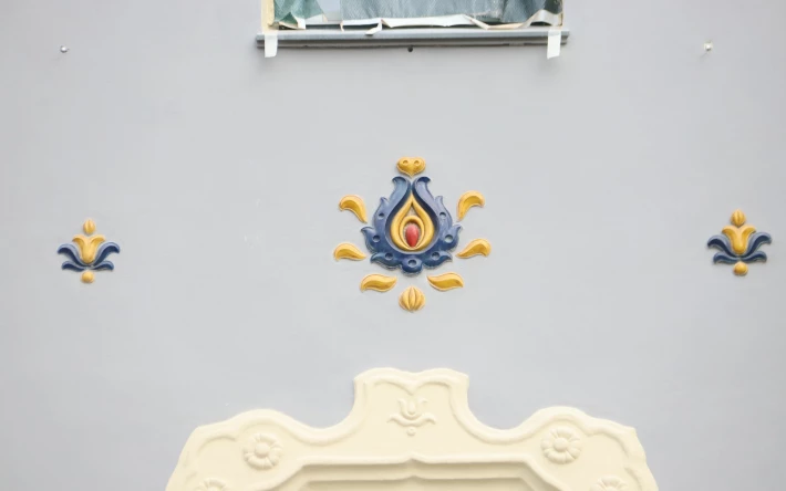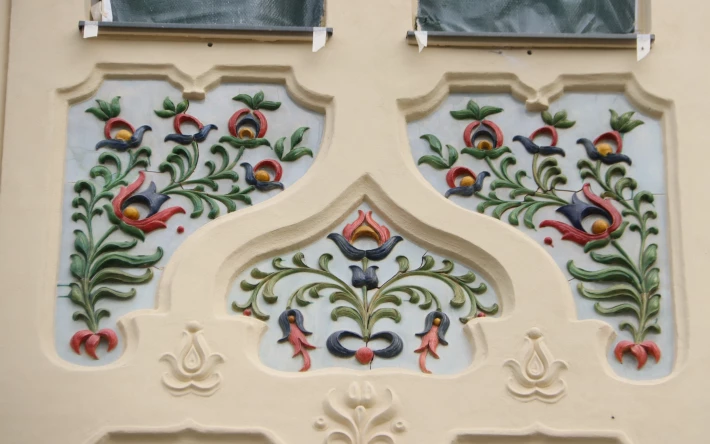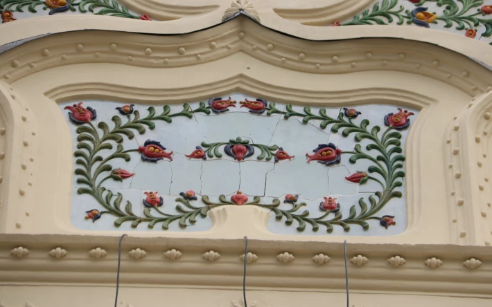 A homlokzaton egyébként annyi a dísz, mint amennyi egy barokk festményen, manapság szobafalat nem díszítenek ki annyira az emberek mint annak idején díszítettek 15 – 20 méteres magasságig is egy épületfrontot.