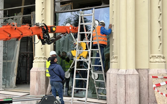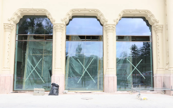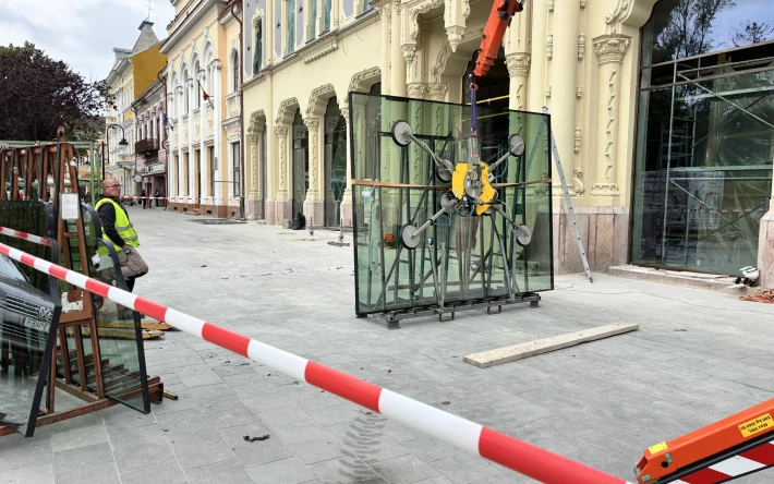 Ebben az időszakban a munka utolsó 1 százalékán dolgoznak az épületfronton: speciális, távirányítású robotkarral teszik a helyükre a földszint hatalmas, 4x5 méteres vitrin-üvegeit. Időigényes munkafázis, amellyel sietni nem lehet, de hamarosan végeznek, mondják.