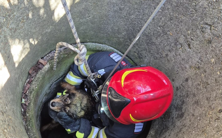 Ugyancsak vasárnap riasztották a tűzoltókat Gombáserdő településre, ahol egy kutya egy körülbelül 6 méter mély kútba esett. A szatmárnémeti tűzoltóság egy speciális mentőfelszereléssel ellátott járművel sietett a helyszínre. Az egyik tűzoltót leeresztették a kútba, sikeresen kimentve az ijedt, de sértetlen állatot, amelynek nagyon örültek gazdijai, mind a hat gyermek, aki gondját viseli.
