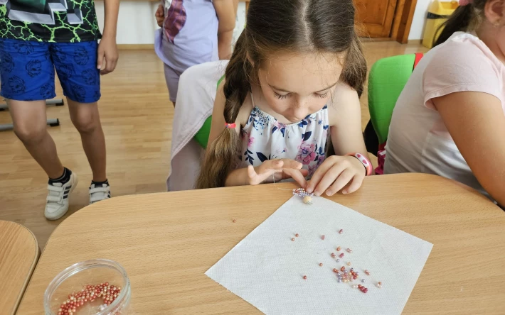 A csütörtöki nap a hagyományőrzés jegyében telt. Urbán Tünde tanítónő vezetésével a gyerekek gyöngyöt fűztek, majd saját mesebeli jótündért készítettek, amelyet büszkén vihettek haza emlékbe. A foglalkozások mellett a jó hangulat és a sok játék továbbra is kiemelt szerepet kaptak.