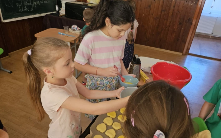 A második napon a mesehősök világához kapcsolódva „hamuban sült pogácsa” készült. A gyerekek aktív részesei voltak a teljes folyamatnak – dagasztottak, gyúrtak, nyújtottak –, az elkészült finomság pedig osztatlan sikert aratott. Ezt követően egy közös mesefát alkottak meg, amelyre saját készítésű díszeiket helyezték el.