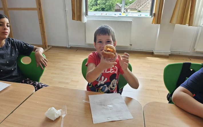 A tábor zárónapja is bővelkedett izgalmakban: csapatépítő és ügyességi játékok mellett kavicsfestéssel tették emlékezetessé az utolsó napot. A közös ebéd ezúttal különleges meglepetéseket tartogatott: Halász Zsuzsa és Tar Ágnes frissen sült kolbásszal kedveskedtek a gyerekeknek, majd Kiss Ingrid egy tál házi fánkkal koronázta meg az ebédet, amiért külön köszönet illeti őket.