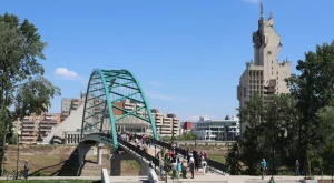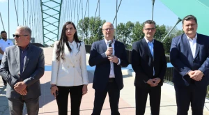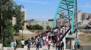 Teljes, 213 méteres hosszával az ország leghosszabb „autómentes” hídját adták át április 10-én pénteken 11 órakor Szatmárnémetiben. A híd a város régi központját köti össze a Szamos bal partjával, ahol három lakótelep közé és egy bevásárlóközpont elé lett építve a pillérje. Nemcsak hosszában, de kialakításában is egyedi: nincs vízben álló lába, az enyhén megfeszített hídtestet csak a partokon megöntött lábak tartják, víz fölötti ívét nem töri meg semmi. Akár a Deceba-l, akár a Golescu-hídról nézi a személő, az a benyomása, hogy a híd a víz fölött lebeg.