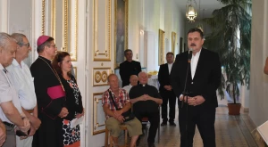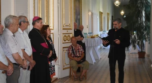 Pénteken délután a püspöki palotában nagy számban egybegyűlteket házigazdaként nm. és ft. Schönberger Jenő megyéspüspök köszöntötte, Petőfi Kerényi Frigyeshez írt Úti leveleiből idézve, amelyben mérhetetlen örömmel számolt be arról, hogy szeptemberben megházasodik, feleségül veszi Szendrey Júliát. „Az, aki a másik embernek azt mondja: szeretlek, mintha azt mondaná: te soha nem fogsz meghalni, Gabriel Marcel egzisztencialista filozófus szerit. Hiszen az igazi szeretet örökkévaló — a házasság szentségében erre kérnek áldást és megerősítést az oltár előtt egymásnak hűséget fogdók. Meggyőződésem, hogy anno Sándor és Júlia is úgyanígy érezte ezt, mint minden jegyespár.” — mondta. Hangsúlyozva: hiszi, hogy ez az oltár a jelen korban is a keresztény családról szóló üzenet közvetítője. „Család, légy azzá ami vagy — az élet és a szeretett közössége. A Petőfi családnak még egy kerek évet sem engedélyezett a gondviselés, mégis hiszem, hogy szeretetközösségük Isten országában beteljesedett.” — fogalmazott Jenő püspök.
