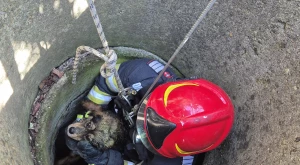 Ugyancsak vasárnap riasztották a tűzoltókat Gombáserdő településre, ahol egy kutya egy körülbelül 6 méter mély kútba esett. A szatmárnémeti tűzoltóság egy speciális mentőfelszereléssel ellátott járművel sietett a helyszínre. Az egyik tűzoltót leeresztették a kútba, sikeresen kimentve az ijedt, de sértetlen állatot, amelynek nagyon örültek gazdijai, mind a hat gyermek, aki gondját viseli.