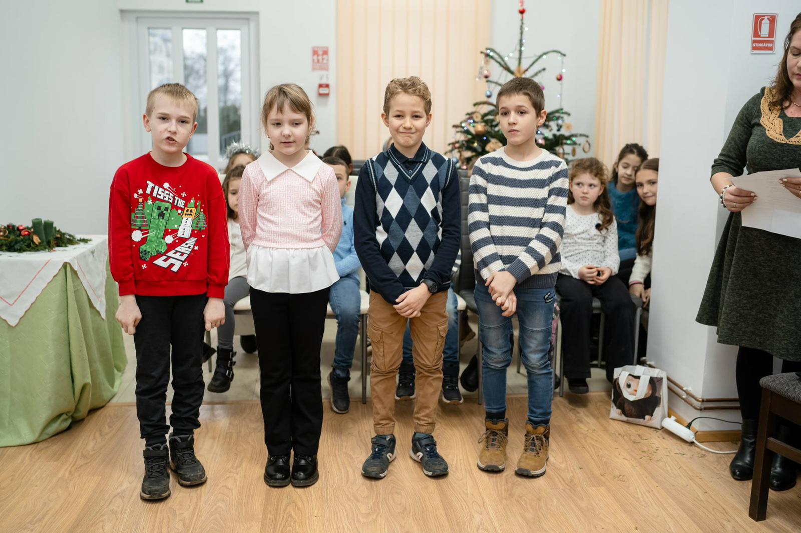 A meghitt hangulat karácsony előtti héten érte el a tetőfokát, amikor az elemi osztályos gyerekek látogatták meg a szépkorúakat, előadva nekik egy kis ünnepi műsort. A kisdiákokat Vas Ilona, Ferenczi Éva, és Zichor Terézia tanítónők készítették fel. Kicsi és nagy együtt énekelte a Mennyből az angyal kántálást, könnyeket csalva a jelenlévők szemébe.